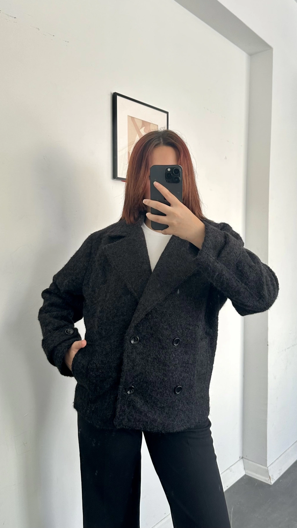Vanessa Keçe Kısa Kaban Siyah