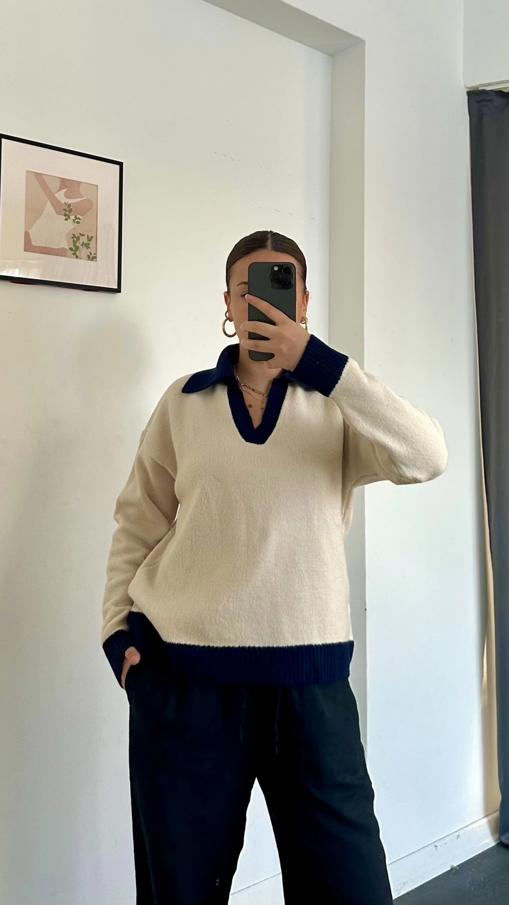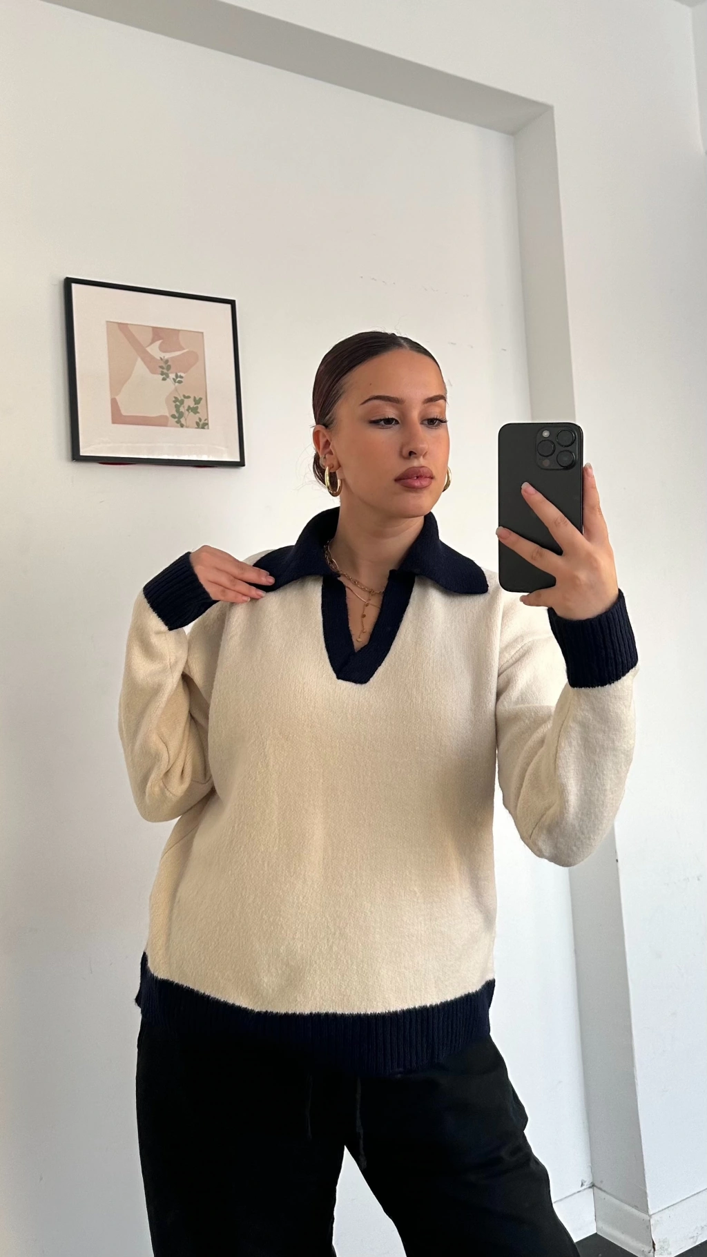 Zora Polo Yaka Triko Kazak Krem